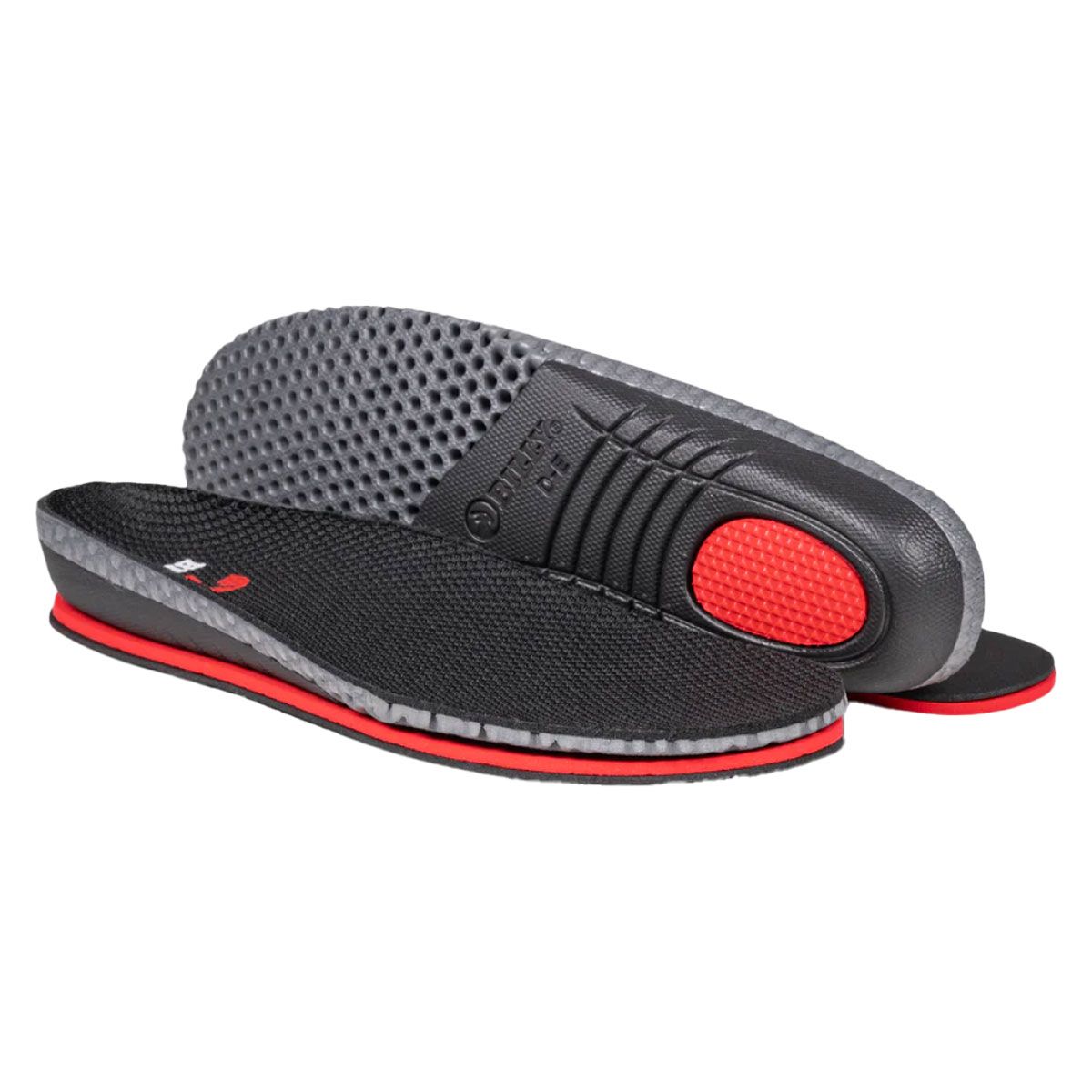 De doos bevat twee extra inlegzolen, zodat je de ruimte die je nodig hebt kunt aanpassen met of zonder brace of voetboogondersteuning.
